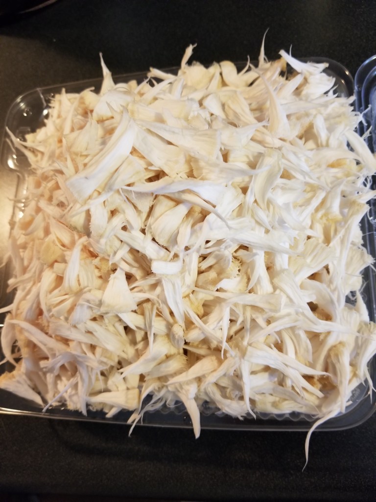 Lion’s mane really does smell faintly of fresh seafood and, when picked apart into strips, strongly resembles shredded crab meat. It takes time and patience to transform it into that state, but with a great friend, some music, or an audiobook, I promise that it’s well worth the effort.